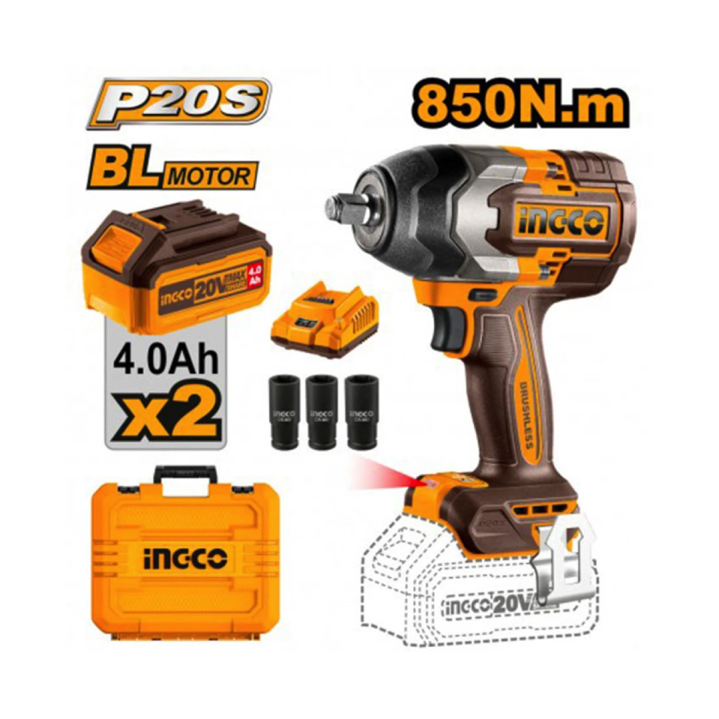 L’avvitatore a impulsi INGCO CIWLI2085 è uno strumento professionale compatto e potente, ideale per officine, campeggi, cantieri e appassionati del fai-da-te. Dotato di motore brushless 20 V, offre una coppia di fissaggio di 850 Nm e una coppia di rottura (nut-busting) di 1 000 Nm, per affrontare bullonature robuste e componenti ostinati.