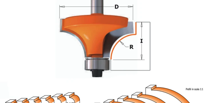 Le frese CMT serie 7/8/938 sono utensili professionali progettati per eseguire lavorazioni di bordatura, arrotondamento e profilatura su legno massello, MDF, laminati e materiali compositi. Grazie al profilo a raggio concavo (quarto tondo), queste frese garantiscono finiture precise e decorative su bordi e profili di mobili, porte, cornici, modanature e realizzazioni artigianali.